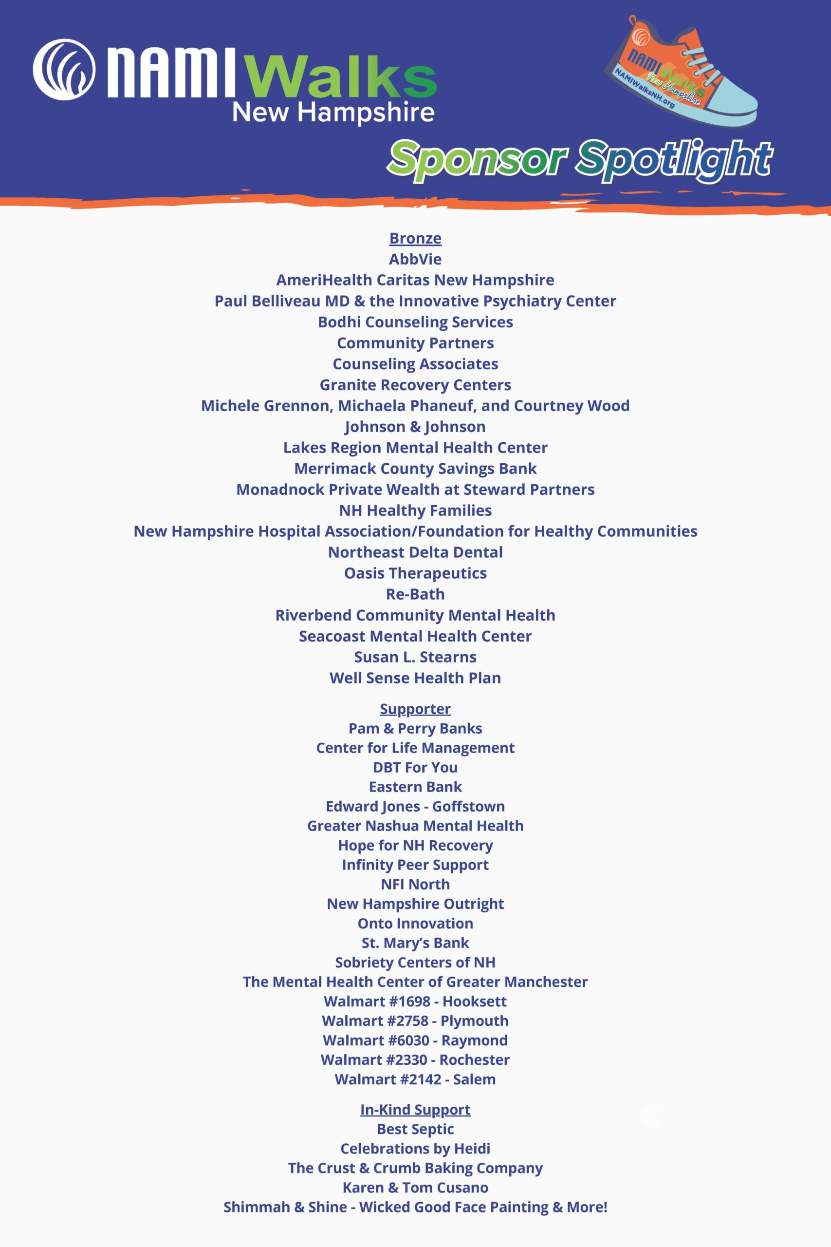 Thank you for joining us for another amazing NAMIWalks New Hampshire! Because of you – our inspiring Walkers, our generous and steadfast sponsors and donors, our dedicated volunteers, and our entire NAMI NH Family – we broke all previous NAMI NH records!